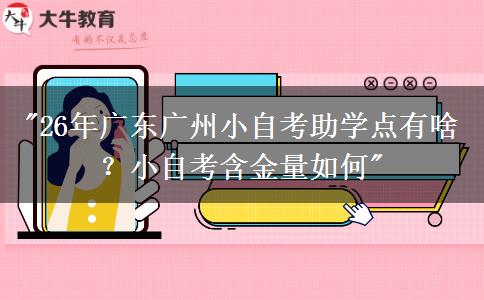 通过以上介绍,我们可以看出26年广东广州小自考助学点众多,小自考的含金量也是毋庸置疑的。如果你是需要提升学历的同学,可以考虑选择小自考来实现自己的学习目标。希望本文能够为参加自考的考生们提供一定的帮助,如有更多疑问,欢迎在线咨询大牛老师,获取更多专业指导。祝大家考试顺利,学业有成!。
